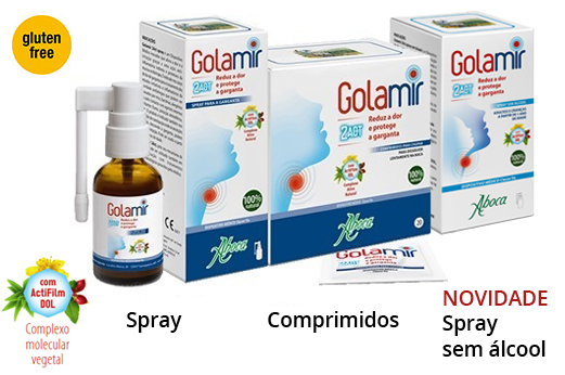Golamir 2Act é um produto que alivia a dor e a irritação protegendo a mucosa orofaríngea. É indicado nos casos de dor de garganta causados por agentes externos (vírus, bactérias, alergénios, fumo, poluição atmosférica, pó).
